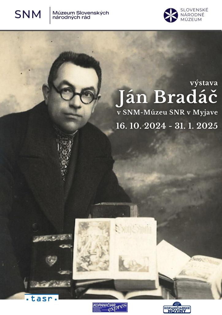 SNM - Múzeum SNR vás srdečne pozýva na výstavu o prvom myjavskom múzejníkovi a angažovanom činiteľovi kultúrno-spoločenského života na Myjave či v komunite Slovákov v USA, Jánovi Bradáčovi.